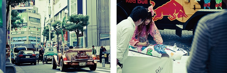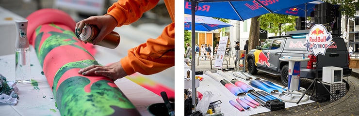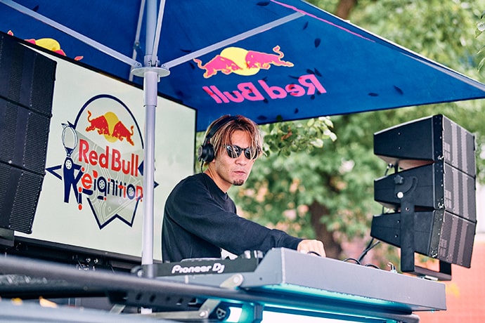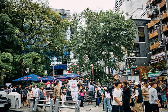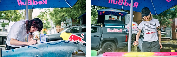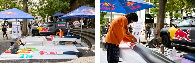 三角公園の中にはレッドブルのイベントカーもスタンバイし、オールタイムでGOODミュージックを放出。SHUN NAKAOやIBUのアーティストたちも音楽に乗りながら描き、お客さんたちも一緒に盛り上がる光景が、なんとも“アメリカ村っぽい”。そんなグルーヴを感じる瞬間がずっと続いていきます。
