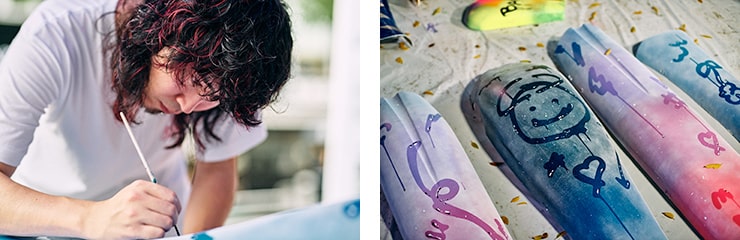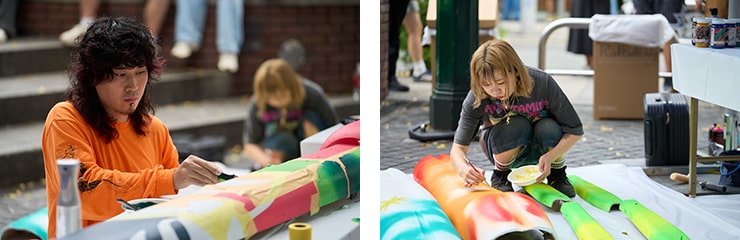 アートを纏っていた街路灯のパーツを1つずつ外し、下地処理を施してそこにペインティング!パーツは全部で16あり、それぞれの作風が際立つアートがどんどん描かれていきます。