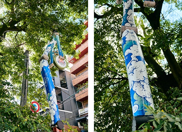 オールドスクールのバブルみたいなものですが、繋げていくと煙にも雲にも見える。いい感じに伸びてる木々の緑と街の雰囲気とマッチするように描きました。作品自体はそんなに難しいことはしてないんですが、図面上はめちゃくちゃ細かくなってたので、キレイにラッピングしてくれた職人さんには感謝ですね。