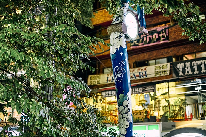 これと言ったテーマは決めてませんでした。ただ、現物をチェックしに来たら、街路灯の下の部分がステッカーでやばいことになってたので、完成後も貼られることを前提にしたデザインにしたんです。だから、一発目は誰が貼るんかなって思ってます(笑)