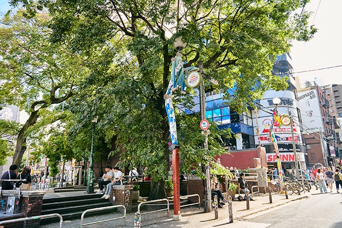 三角公園にたむろしてる人たちに向けて、背中の部分に描きました。隙間に入れ込めればと思ってたので。