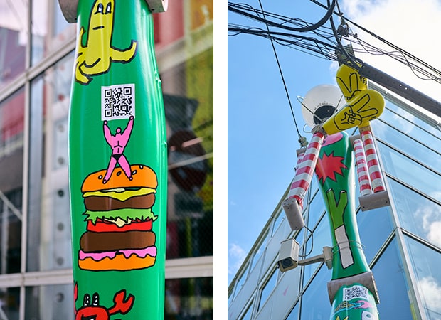 アワジさんの作品は平面やGIFアニが多い中で、『Red Bull Reignition』では公共物の街路灯に作品を残すことになったわけですが、どんな想いで取り組まれましたか?