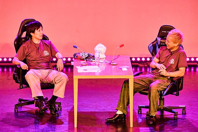 てらうち:僕ら90分間のトークライブをやるの初めてだったんですよ。マンゲキとかやと舞台から見えるところに常に時計があるんですけど、今回は会場が違うっていうのもあって時計がなくて。時間的に今これで合ってんのかな、ちゃんと盛り上がってるんかなとかずっと考えてました。