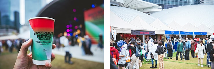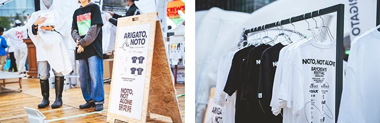 また、今回の『BAYCREW'S FESTIVAL OSAKA』は、2024年能登半島地震・奥能登豪雨によって甚大な被害を受けた能登地方へ復興の応援を目的としたチャリティーフェスティバルになっているのも特徴なんです。入場には事前に、お一人様1,000円の事前募金(Web決済)が必須になっていて、フェスに参加することが支援にもなる素敵な仕組みに(お預かりした募金は被災地への支援として寄付!)。能登の人々とタッグを組み、現地の魅力を伝える特設ブースもマーケット内に登場し、こちらも大盛況でした!