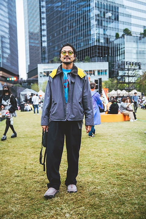 キービジュアルや会場演出などのアートディレクションは、昨年に続き、国内外で活躍するアーティスト・YOSHIROTTEN氏が率いるデザインスタジオ・YAR が担当。フェス当日は雨に見舞われることもありましたが、そんな天候も幻想的に感じるほどの世界観が広がっていました。それでは、見渡す限りおしゃれさんたちが集まった『BAYCREW’S FESTIVAL OSAKA』のSNAPをどうぞ!