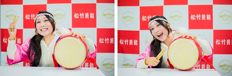 芸人ではなく歌手を目指して松竹芸能のオーディションへ。はっぴをまとって太鼓を叩き、お茶の間にハッピーを届けていきたい。