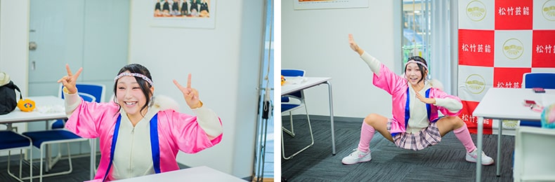 もともと芸人ではなく歌手を目指していたんです。歌手、タレント、女優、芸人とジャンルを問わず募集する「松竹 JAPAN GP CONTEST」というオーディションに、14歳の時に歌手志望で応募しました。最終選考まで進んだのですが、そこでの課題が3分間何でもやっていいよというもので。シンプルに歌ったり踊ったりする方も多いみたいなのですが、私はできることを全部詰め込んだコントを作って披露したんです。幼い頃からミュージカルやダンス、歌、ギターなどたくさん習い事をしてきて、そんな自分の特技にお笑い的な要素を加えたら面白いかなって。それをキンタロー。さんや安田大サーカスさんを見つけてきた社員さんが気に入ってくださって、審査員特別賞を受賞しました。私自身は歌手として応募したつもりだったのですが、その方に「君面白そうやから芸人になってみない?」って言われて騙されて芸人になりました(笑)。気付いたらはっぴを着てハチマキを巻きて、太鼓を抱えていましたね。