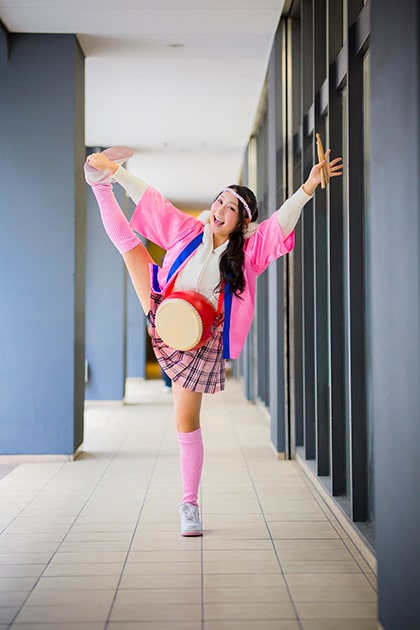 想像以上に大変で、本番を迎えるまではアンハッピーでした(笑)。だけどやり終えた後は、自分で書いたもので笑ってもらえることがこんなに楽しいんだという達成感で胸がいっぱいになりました。これまでもネタは書いてきたけれど、自分の台本を先輩や後輩に渡して、それを演じてもらうのは初めての経験でした。皆さんの貴重な時間をいただいて稽古もさせてもらったし。そうそう、単独で一番難しかったのは、新喜劇の出演者12人のスケジュールを合わせることだったかも。12⼈に私が指⽰して演技指導するのが恐れ多くて、「もっとはっきり言ってもらってええで!はっぴが座長やねんから」と流石にフィーバーの良元カルビさん、オーパスツーさんなど⾊んな⽅に協⼒していただき成功させることができました。