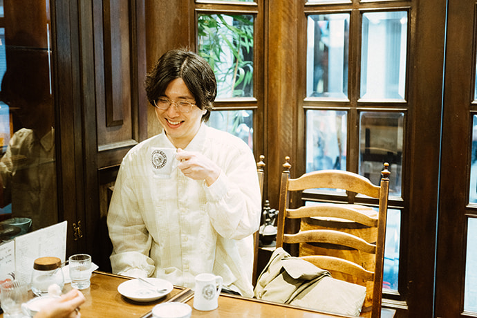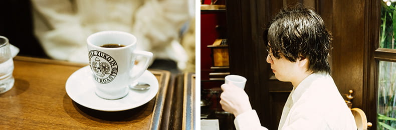 決まって注文するのはブレンドコーヒー。「コーヒー好きなんですけど、豆を挽いたり、自分で淹れるとかはしないです。カフェバーやってるのに料理もお酒も興味がないし。全部ちょっとずつ好きなだけで、何かにハマるってことがないんです」。スカしているわけでも、あえて距離を取っているわけでもなく、ハマりたいのにハマれないそうで、「なんのジャンルにおいても本当にオタクになれないというか。今年は推し活をするのが目標です」