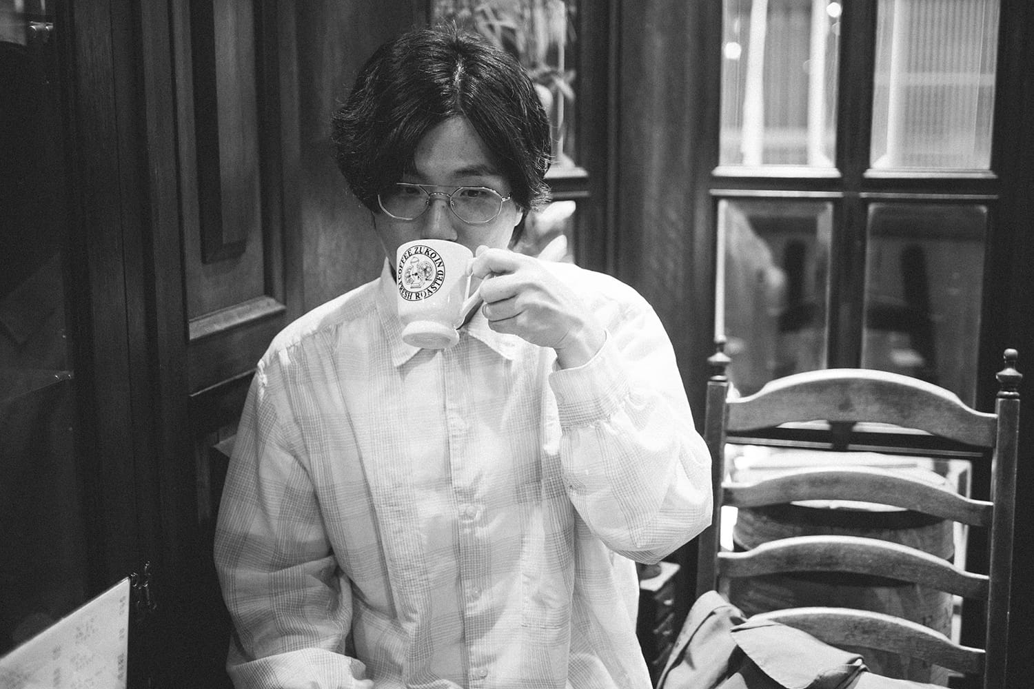 コーヒーを飲みながら、話題は大阪のカルチャーシーンについて。