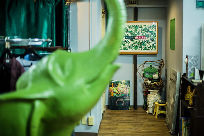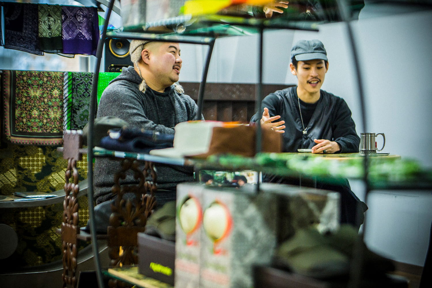 2025年10月にファーストコレクションを発表したアパレルブランド<Mrs.MINE(ミセスマイン)>。実物と同じアイテムをフィギュアに着せて撮影・発信するなど、世界観はポップでありながら、そのスタイリングや高品質なアイテム群はオーセンティックなアメカジの影響を感じさせます。現在、<Mrs.MINE>のアイテムを購入できるのは、直営のECサイトと『Mansion Butik HALIA』(以下、ハリア)のみ。ハリアは、東南アジアのカルチャーを独自の視点で解釈し、様々なモチーフの再構築を得意とするアパレルブランド<rajabrooke(ラジャブルック)>の拠点となる場所。これまでは事務所兼ショップとして、自社ブランドのみを取り扱ってきました。今回はそのハリアを訪れ、<rajabrooke>の牛田さんと<Mrs.MINE>の常國文聖さんの両デザイナーにインタビュー。異なるコンセプトを持つふたつのブランドが協働するに至った経緯や、その後の変化について、“関西ブランド”の若き担い手たちを直撃しました。