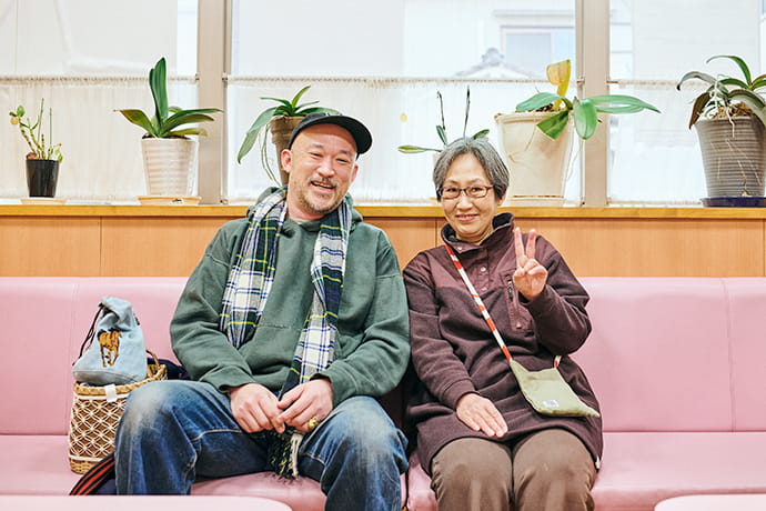 しっかり温冷浴を行い、完全に仕上がった状態の牧田さん。湯上がりの気持ち良さを味わいながら続いて向かったのは、風呂友だち&自転車師匠でもある桶美さんの元へ。