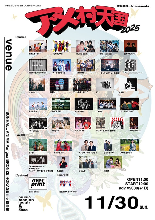 出演: 愛はズボーン / Hump Back / TENDOUJI / アイアムアイ / アフターアワーズ / 炙りなタウン / おしっこ / 裸繪札 / H.U.G / Panorama Panama Town / FATE BOX / mogari / 夜の本気ダンス / PK shampoo / ナードマグネット / DENIMS / コンテンポラリーな生活 / フリージアン / ザ・シスターズハイ / 171 / 板歯目 / JIGDRESS / かずき山盛り / きのホ。 / Mikity(PISTOL)