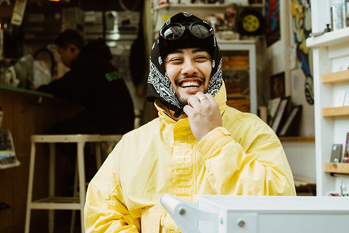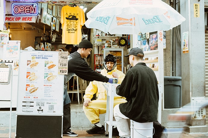 ビートを打ってリリック書く…だけでなくビデオも撮る。その3拍子を、それも脅威のペースでやってのけるアーティスト兼クリエイターがISSEI TERADAだ。10代で始めたヒューマンビートボックスから始まり、音楽と映像で独自のスタイルを表現してきた。手がける映像作品は年間に40〜50本。映像ディレクターとしても堂々の実績を誇る一方で、ここ5年ほどはフロントマンとして、盟友であるKOPERUとのユニット・HYPER TAMADEをはじめとするラップ活動も活発化。特に今年は、20年以上名乗ってきたアーティストネーム・ISSEIからフルネーム・ISSEI TERADAに改名しただけでなく、この12月にはEPリリースからのソロワンマンライブ開催と、怒涛の加速っぷりを見せている。何が彼をそこまで突き動かすのか。その原動力が知りたい!ということで、若手時代の話から根掘り葉掘り聞いてみることに。集合場所は本人もお馴染みの『FAT DOG STAND』。黄色のセットアップに身を包み、ただならぬオーラを放ちながら登場したが、話してみると大阪の人懐っこい兄さん的な雰囲気。そんな彼のヒストリーや制作活動にかける想いとは。