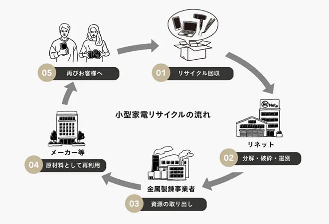 小型家電に含まれている鉄やアルミなどの金属は、再利用できるとっても貴重な資源。「環境も、お客様も、もっと美しくなってもらいたい」という想いから、今回のプロジェクトは始まりました。