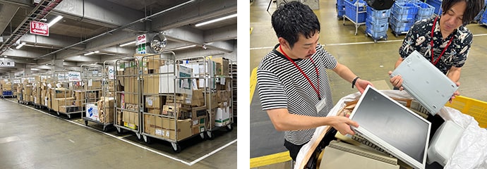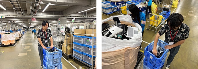 向かった先は、『BEAUTY CYCLE PROJECT』で<SALONIA>と協働しているリネットジャパンリサイクル株式会社のスマイルファクトリー名古屋。ここは全国各地から小型家電が回収されてくる場所で、それらを細かく分解し、資源として安全&確実に再利用できるようにしています。