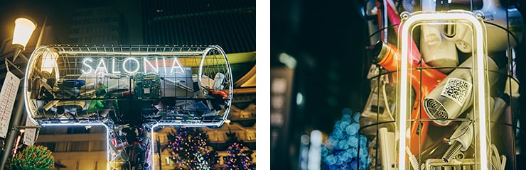 「カラフルに発色するタイプもあるんですが、やっぱり今回のオブジェではシンプルで洗練されたデザインが特徴の<SALONIA>らしく、美しくキレイに見える白がピッタリ」とロビンさん。ネオンサインも美しく仕上がり、プロジェクトメンバーのワクワクも高まっていきます。