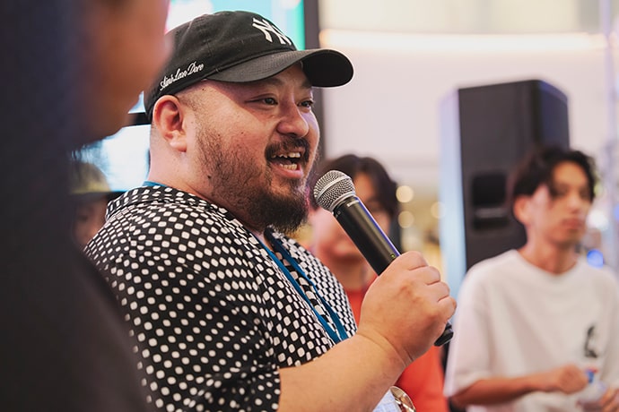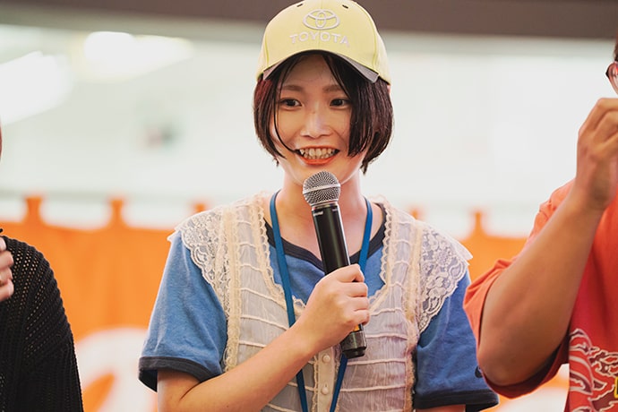 「メリケンパーク」を担当する大原さん。「ITAMI GREENJAMとしては“ボーダレス文化祭”とうたっている間口の広さはそのままに、皆さんご存知のPuffyやDef Techといったアーティストをブッキングしています。さらに、ITAMI GREENJAMでもやっている盆踊りや障がい者の方によるブレイクダンス大会も予定しています」