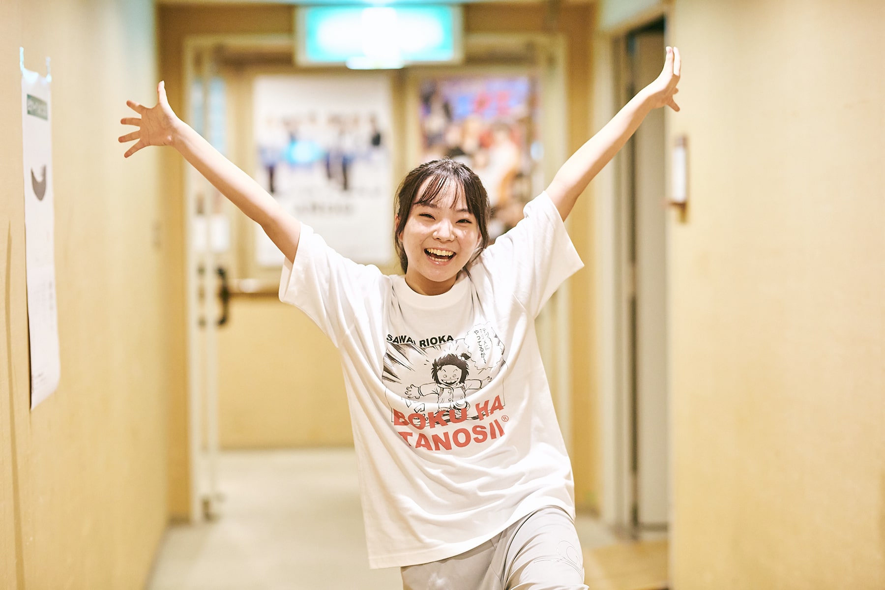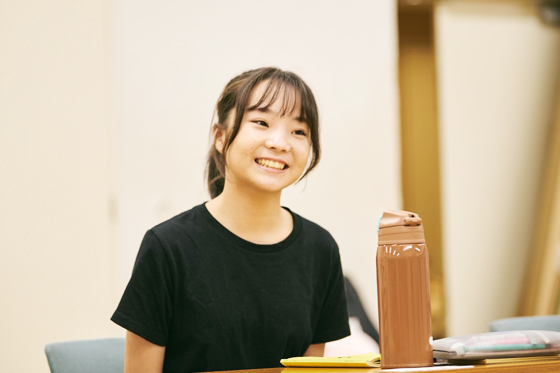 元気いっぱいにTシャツを着こなしてくれた澤井さん。稽古初日を迎えて「本当に待ちに待った稽古。皆さんと本読みができるのがすごく嬉しいし、自分の課題も見つかったので、頑張っていきたいなって思います」とにこやかにコメント。