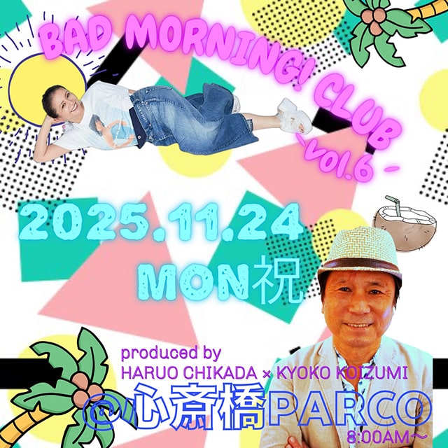 11月21日(金)には『MARZEL 5th ANNIVERSARY PARTY』、11月23日(日)は『VOU/棒 POP UP TOUR「XO棒」CLOSING PARTY』、11月24日(月・祝)は近田春夫&小泉今日子による『BAD MORNING! CLUB -vol.6-』(チケットSOLD)、11月25日(火)は『Meets Regional presents GOMA×松尾諭トークショー』が行われます!!最初から最後まで楽しくて盛り上がる、そんな心斎橋PARCOの5周年企画を引き続き要CHECKでお願いします!!