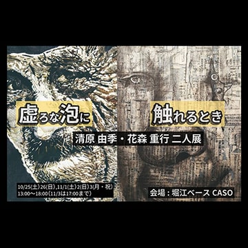 清原由季と花森重行二人展 「虚ろな泡に触れるとき」が、北堀江の堀江ベースCASOで10月25日から開催!