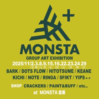 ストリートでその名を刻むグラフィティライター&ペインター9名によるグループ展「MONSTA+」が、11月2日から東大阪のMONSTA倉庫で開催!