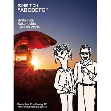 Araki Yuta、Kakunoshin、Takeshi Wadaの3人のアーティストによる展示「“ABCDEFG”」が、西田辺のW&B Delicious Serviceにて1月12日まで開催中!