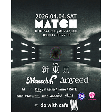 今回もナイスラインナップ!「MATCH」が4月4日に梅田のdo with cafeで開催!出演は新東京、Massclub、Anyeed!!