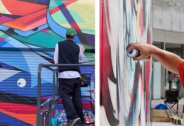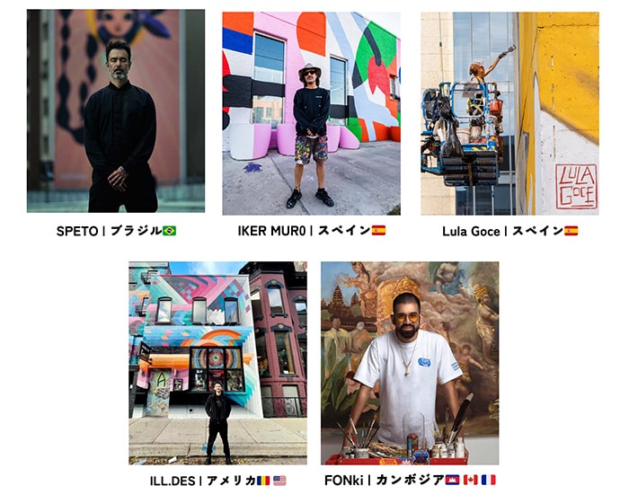 しかも、この『えのえん祭』に合わせて、ブラジル・スペイン・アメリカ・カンボジアから新たなミューラルアーティスト5名が来日中!ブラジルでのストリートアートシーンを切り拓いてきた先駆者であるSPETO(ブラジル)や、バルセロナの古い工場を拠点にするアート・コレクティブに参加する女性アーティストのLula Goce(スペイン)など、世界的に活躍している面々ばかり。9月28日(日)までミューラルを公開制作しているから、ぜひ見学してミューラルが完成していく姿を楽しんでください!!此花エリアでは、壁画プロジェクト『MURAL TOWN KONOHANA』で制作されたミューラルが点在しているので、散策するのもおすすめです!!