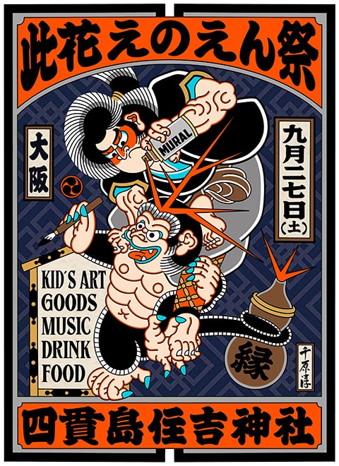 アートと音楽と食が融合する新しい地域型フェス『えのえん祭』。今回初開催となるこのお祭りは、世界中のアーティストが参加する壁画プロジェクト『MURAL TOWN KONOHANA』から生まれた、ミューラルが媒介となる新しいご縁のかたち。仕掛けるのは、此花を拠点に全国各地でミューラルプロデュースを手がけるWALL SHAREです。