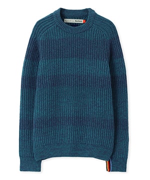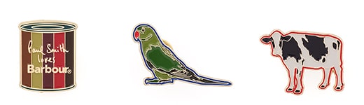 ネップ糸で編まれたざっくりとしたニットは、ワックスドジャケットのインナーとしても最適!雨天用には、ワックスドコットン製のバケットハットやレインブーツもラインナップ。バブアーの代名詞であるエナメルピンバッジもポール・スミス流にアレンジされ、グリーンのオウムやロゼット、そしておなじみのフリージアン牛モチーフなどが、帽子やジャケットの襟元をユニークに彩ります。