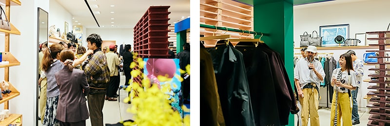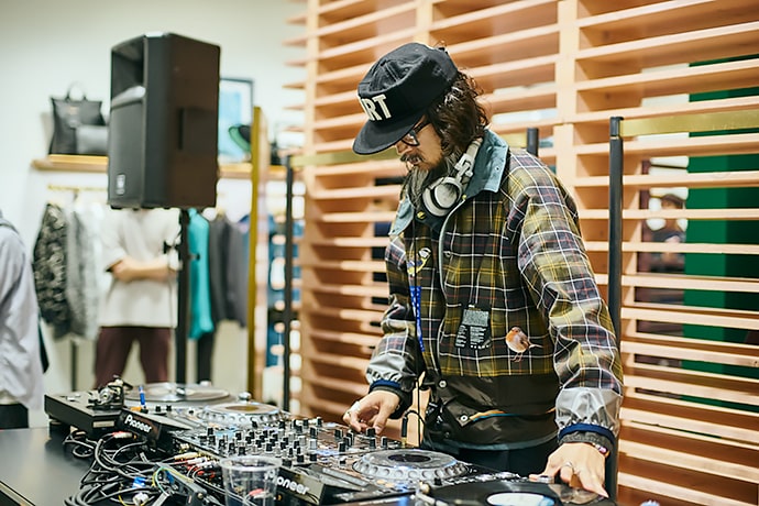そして18時からはローンチパーティーがスタート!今回のコレクションの世界観を表現した特別な空間には、DJブースやアートピースのようなケータリングコーナーも登場し、スタートと同時にたくさんのお客さんたちが詰め掛け、この空間と時間を楽しんでいました。