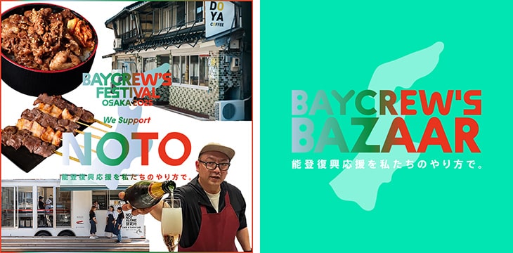 他にも、限定グッズやワークショップ、スペシャルフードが軒を連ねるマーケットエリアも!また、今回の『BAYCREW'S FESTIVAL』は、2024年能登半島地震・奥能登豪雨によって甚大な被害を受けた能登地方へ復興の応援を目的としたチャリティーフェスティバルとして開催。入場には事前に、お一人様1,000円の事前募金(Web決済)が必須になっているのでぜひ支援を!(お預かりした募金は被災地への支援として寄付されます!)能登の人々とタッグを組み、現地の魅力を伝える特設ブースもマーケット内に登場するから、チェックしてみてください!