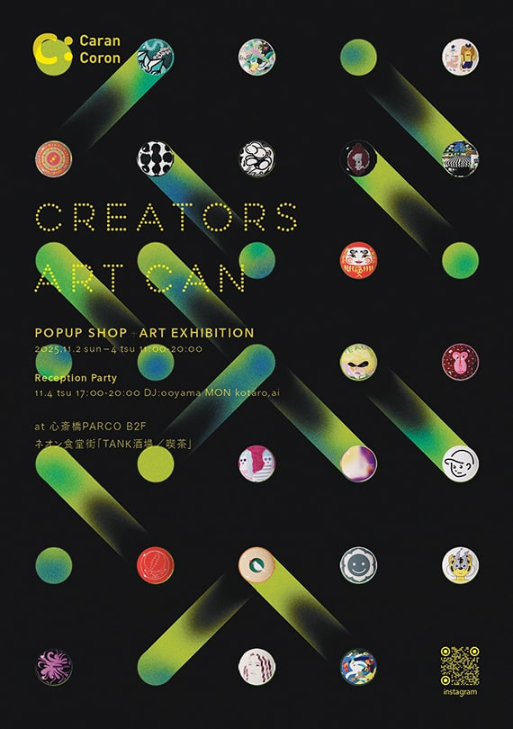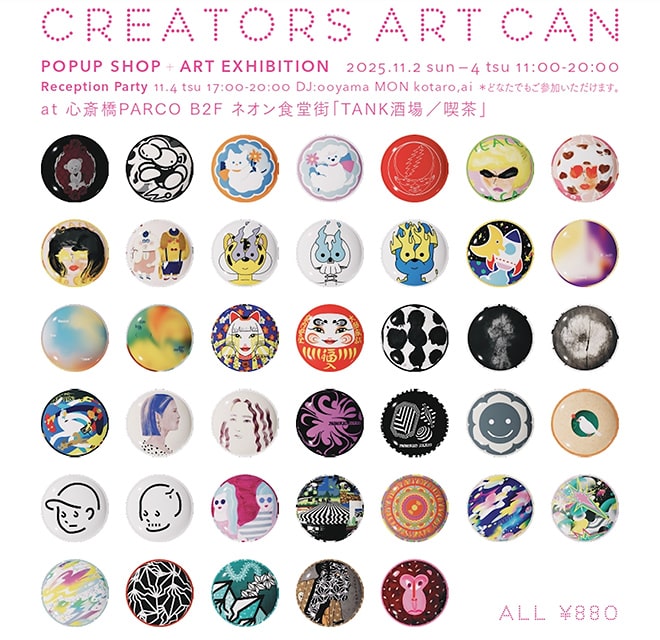 また同日から心斎橋PARCOのTANK酒場にてポップアップを開催し、11月4日(火)にはアーティストのトークショーなども企画されたリリース記念イベントも!新作のコロン缶はもちろん、参加アーティストの原画作品やグッズも販売されるので、ぜひチェックしてみてください!