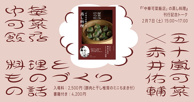 東京・永福町で「自由な発想の中華」を掲げる中華可菜飯店の店主、五十嵐可菜(いがらし かな)が、著書『「中華可菜飯店」の蒸し料理』刊行を記念して京都・恵文社にてトークを開催します。聞き手は店のロゴやビジュアルを手がけたデザイナー、赤井佑輔(paragram)。二人は京都芸術大学の先輩・後輩という縁もあり、料理とデザイン、それぞれの現場で培った「素材の組み合わせ」や道具の使いこなしについて、じっくりと紐解いていきます。