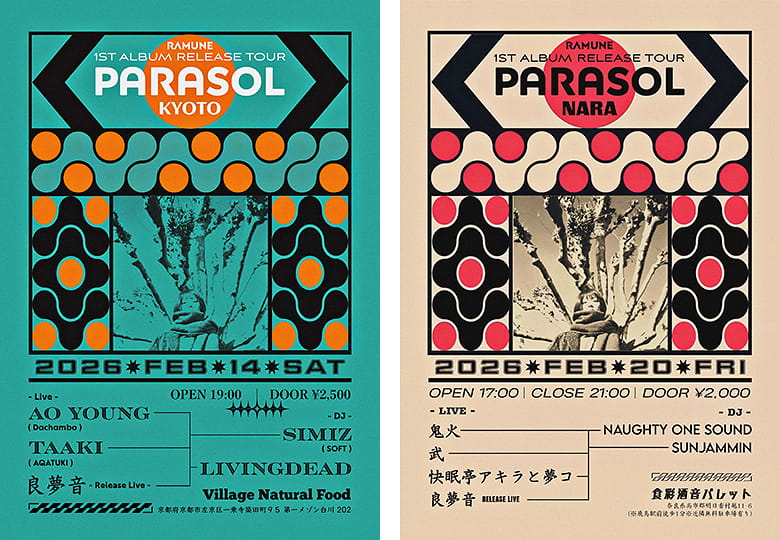 大阪発のニューウェーブバンド・スーパージェットキノコのボーカル&シンセサイザーとして活動する良夢音(RAMUNE)が、ソロ名義初となる1stフルアルバム『Parasol』を2月6日(金)にリリース!