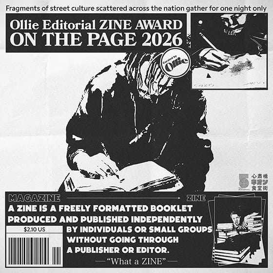他にも5周年記念のスペシャルな企画がまだまだあります!3月19日(木)には、ストリートカルチャーマガジンのOllie監修によるZINEの祭典「Ollie Editorial ZINE AWARD:ON THE PAGE2026」が開催。全国各地からインディペンデントなZINEやブックストアが一堂に会し、それぞれの視点と衝動が交差する一夜限りのカルチャーセッションが楽しめます。